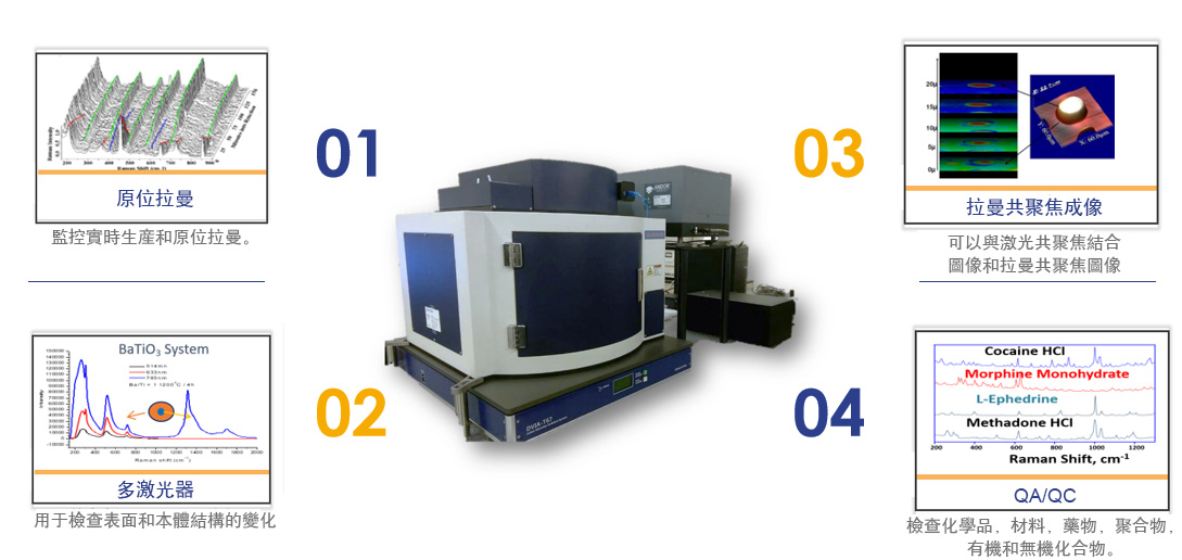 晶格種類判定、結晶度分析、含水率分析;應力分析、生物分子的結構變化分析;化學品成分分析、藥品成分分析